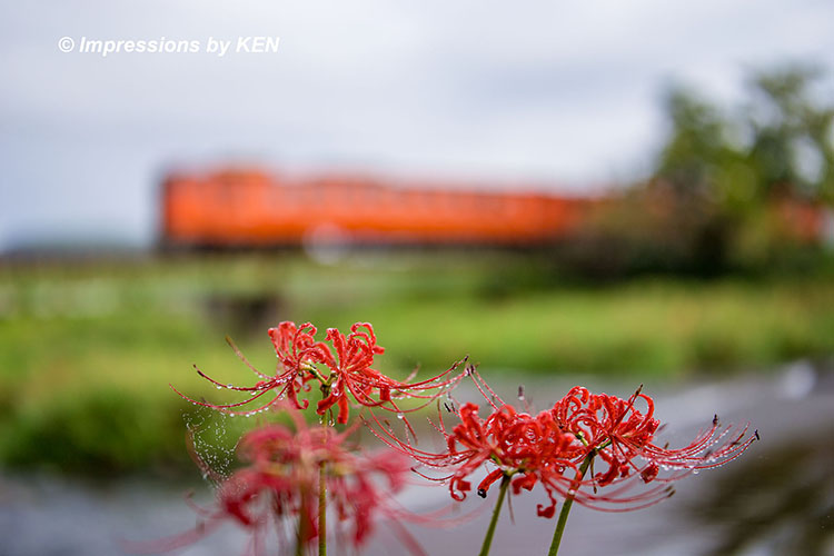 三良坂で彼岸花を撮影した後は、広島市内の自宅まで芸備線沿線をクルマで走ります。芸備線の広島三次間は貴重なキハ47/キハ40タラコが走る路線。そこで、彼岸花とタラコのコンビネーションを狙って、何箇所かで撮影してみました。撮影日は2025年10月24日です。