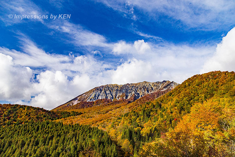 見頃の紅葉を求めて鳥取県の名峰大山まで足を伸ばしてきました。そのギャラリー第二弾の今回は鬼女台(きめんだい)からの写真です。鬼女台は鳥取県(日野郡江府町御机)と岡山県(真庭市蒜山下徳山)の県境にある展望台で、休憩所管理事務所が岡山県側にあるのでネット上の所在地は岡山県真庭市になっています。しかし、私がクルマを停めた場所と、そこから大山を撮影したポイントは管理事務所向かいの鳥取県。駐車場から200m離れた展望台は岡山県です(笑)