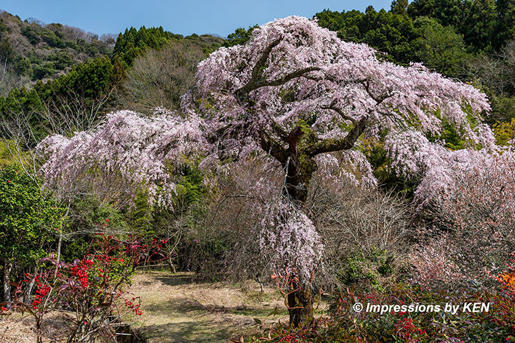 山口県萩市三見蔵本にある円徳寺の枝垂れ桜の作品です。綺麗な枝垂れ桜が咲いているとの記事を見て、広島からはるばる萩市まで行ってきました。円徳寺は初訪問。到着すると綺麗な枝垂れ桜が出迎えてくれましたが、それ以上にご住職の心が伝わる「物」に感銘を受けてきました。撮影日は2026年3月29日です。