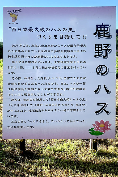 ハス園に立てられていた説明看板。地元の人が大切に手入れされている様子が書かれています。