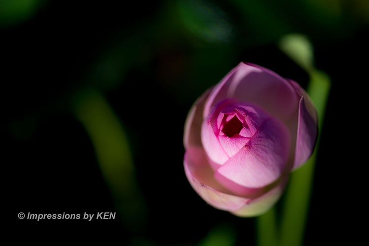 開きかけの蓮を真上から。今度は黒とピンクのコンビネーションで、妖艶な感じに。