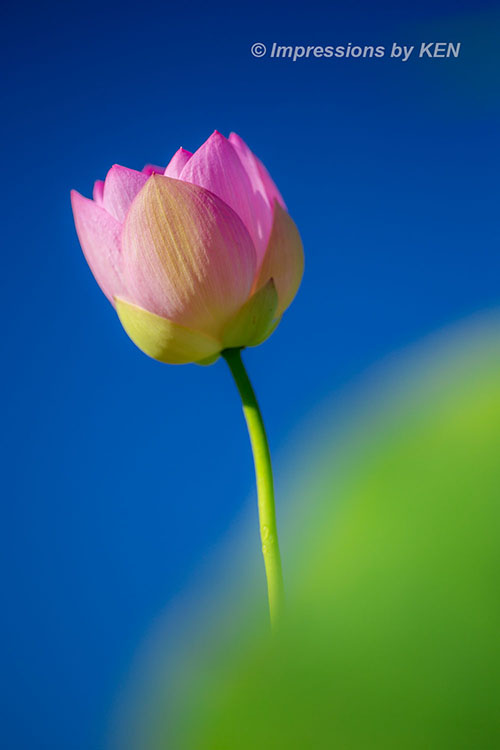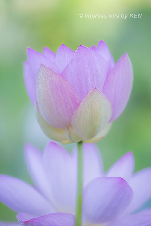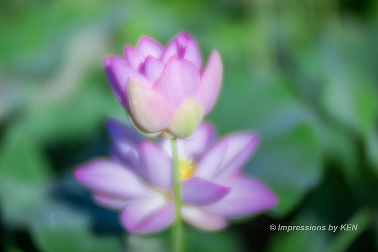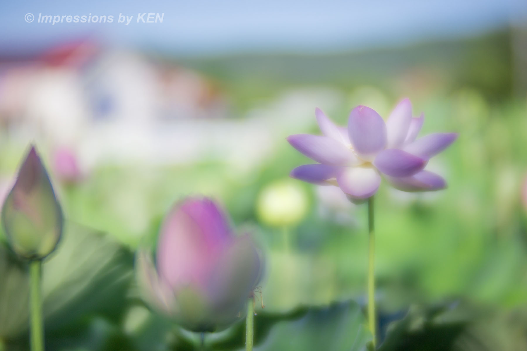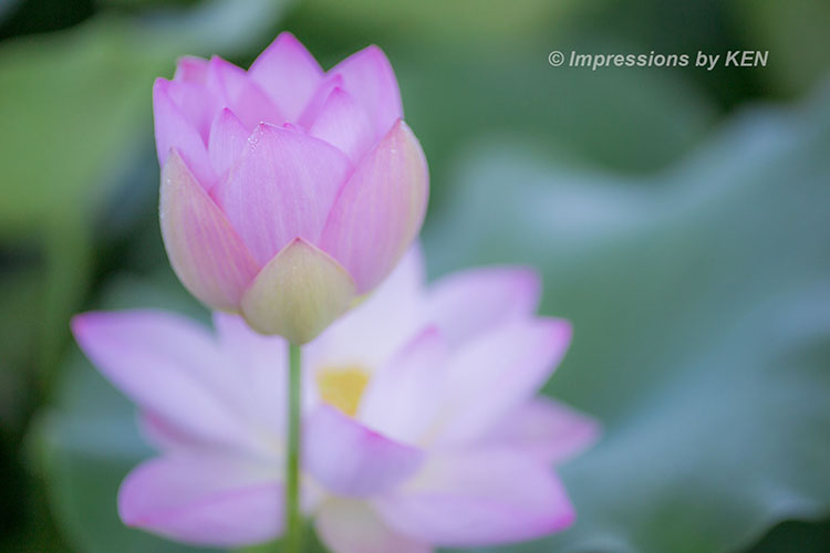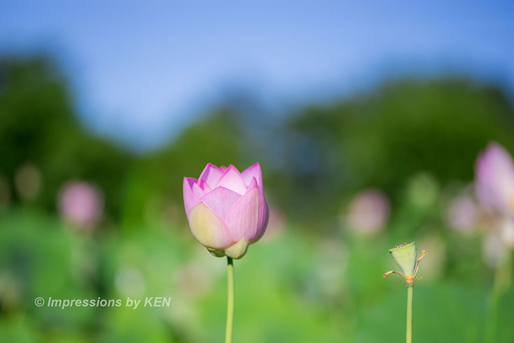 開いた蓮の前に、開きかけの蓮。対象的な表情の組み合わせが素敵で、沢山撮りました。その中の一枚。