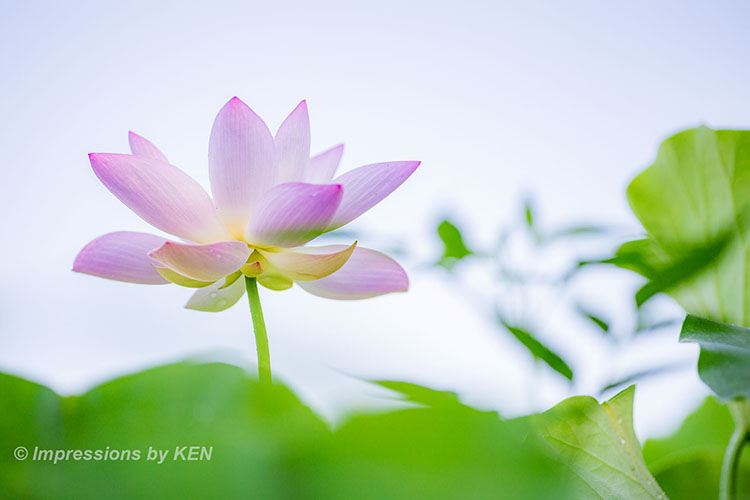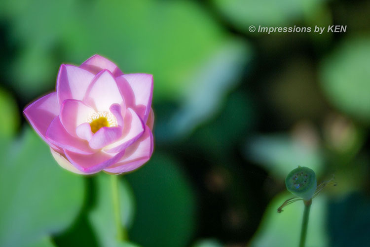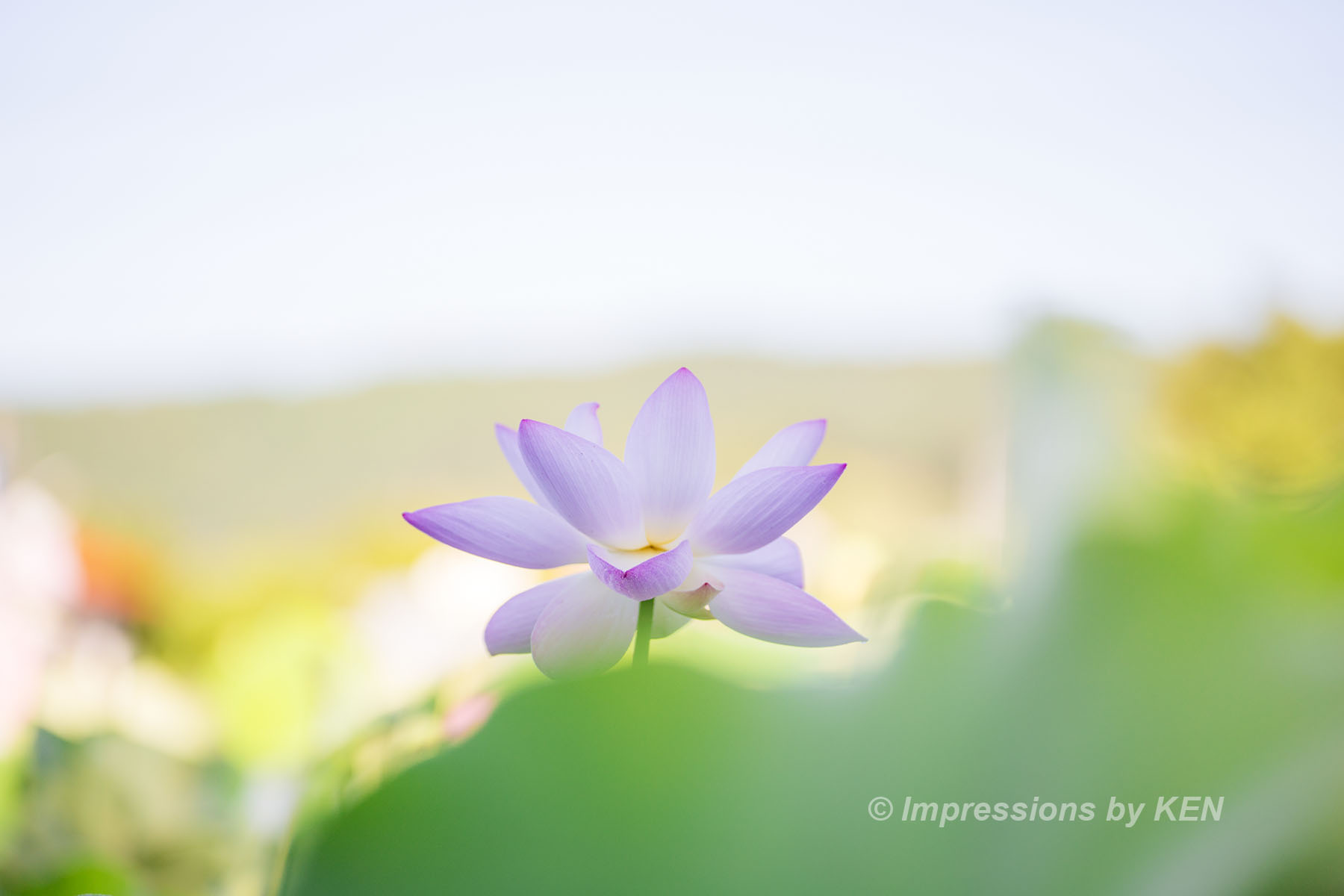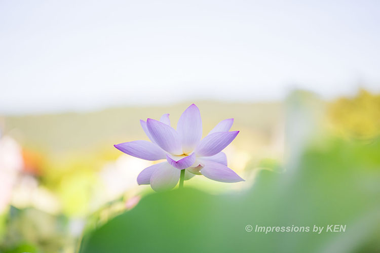 これも日陰に咲いていた蓮。「まるで写真の様な絵」という言葉がありますが、この作品は「まるで水彩画の様な写真」と言えるかも。レンズベビー・ベルベットという際物レンズが為せる技です。