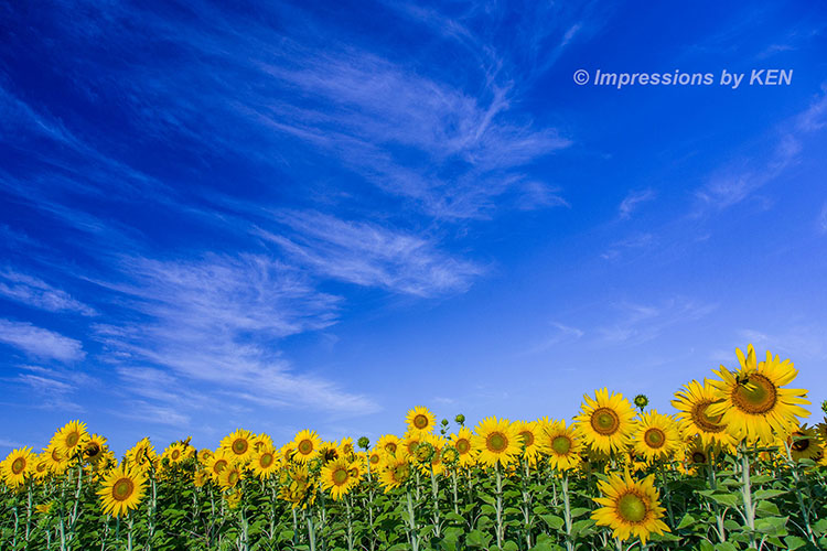 鳥取県西伯郡伯耆町にある植田正治写真美術館付近で撮影した、大山とヒマワリの写真です。二年連続の訪問で、昨年の日の出の頃は曇り空でしたが、今年は快晴で、綺麗な朝焼けと日の出、青空に恵まれました。今年のヒマワリは植田正治写真美術館側ではなく、隣りにある大山ハム工場の方に多く植えられていて、主に大山ハム工場の前で撮影しました。太陽が出る前は涼しい風が吹いて気持ちの良い朝でしたが、日の出と共に灼熱の太陽光がジリジリとカメラマンの背中を焼いて、汗だくの撮影となりました。撮影日は2025年7月29日です。