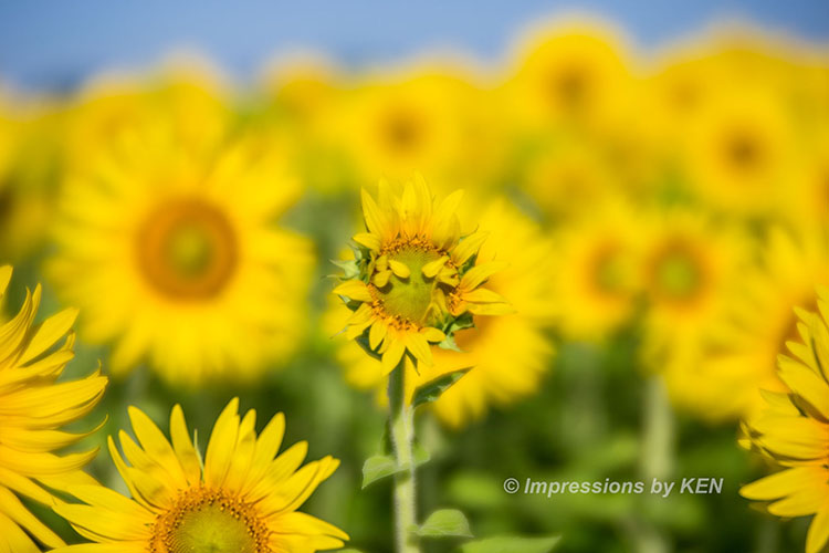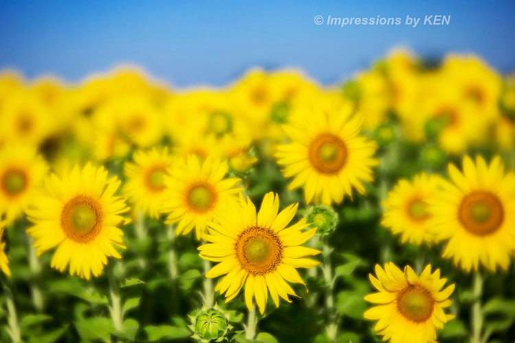 満開のヒマワリを、レンズベビーでちょっとノスタルジック風に。