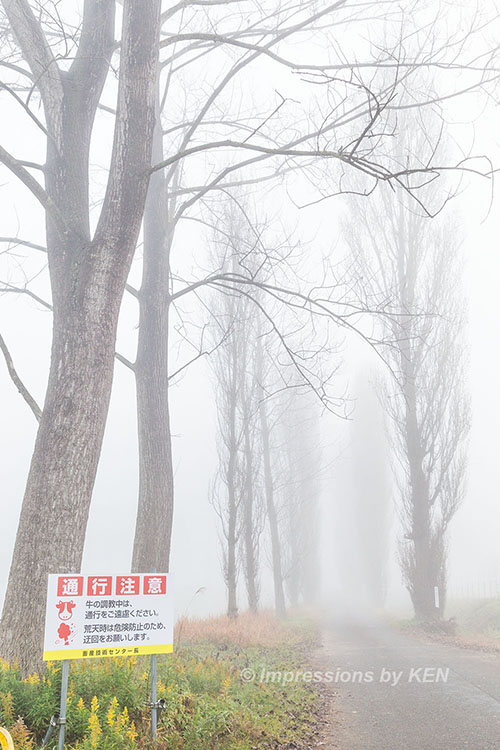 この日の七塚原は深い霧に包まれて、何処を見ても幻想的な情景。