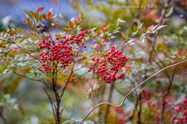 南天の木もあったので、手前の弦と組み合わせて一枚。