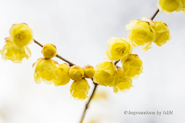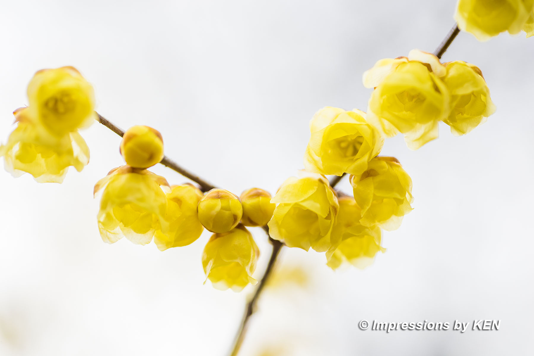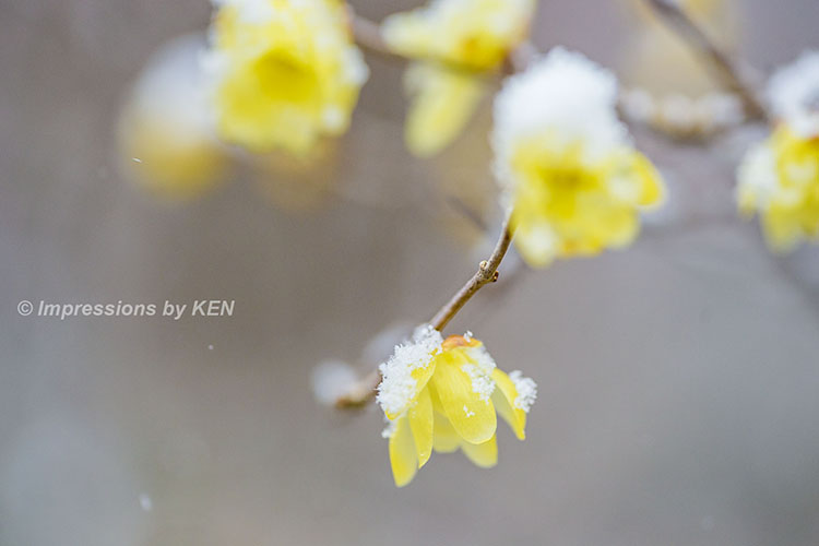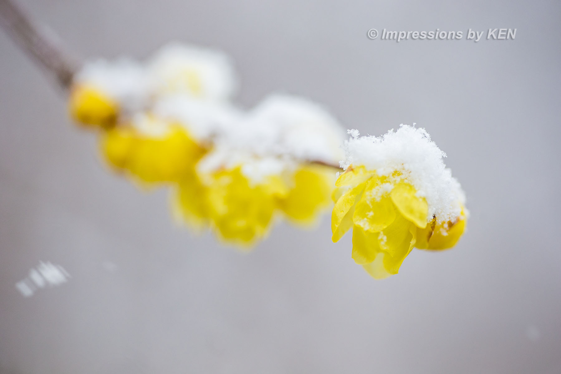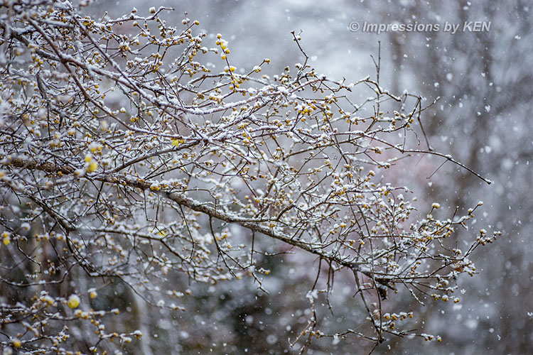 今年もロウバイを撮影してきました。しかし、撮影日は日本全国に最強寒波が到来した日。撮影地に到着直後には青空があったものの、みるみる曇って、やがて猛吹雪に。花もカメラもカメラマンもあっという間に雪まみれになってしまいました。撮影は大変でしたが、突然の雪がもたらした情景には趣があり、それなりの収穫となりました。撮影日は2026年1月21日です。