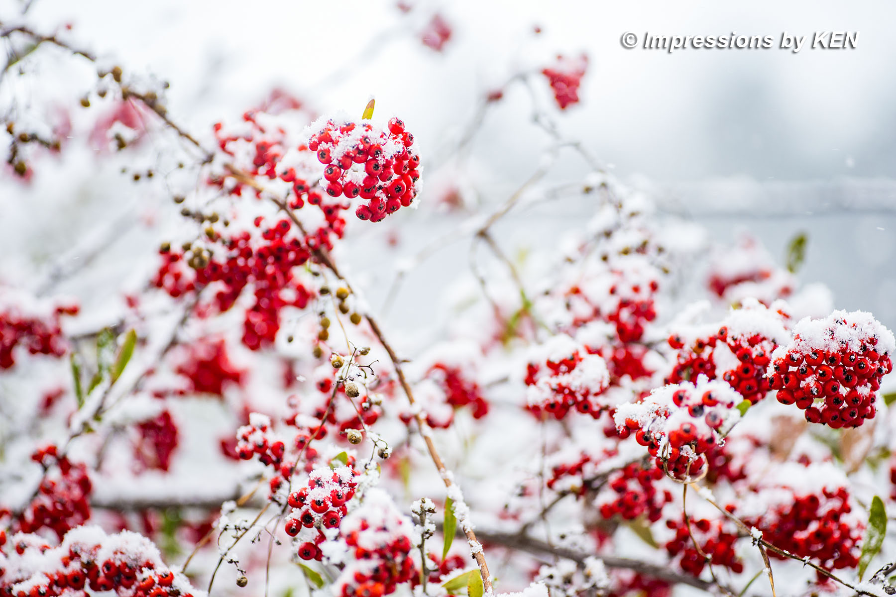 南天の木も、あっという間にこの情景。何となく日本の国旗カラーですね。赤いダウンジャケットを着ていたカメラマンもこんな感じの姿になりました。