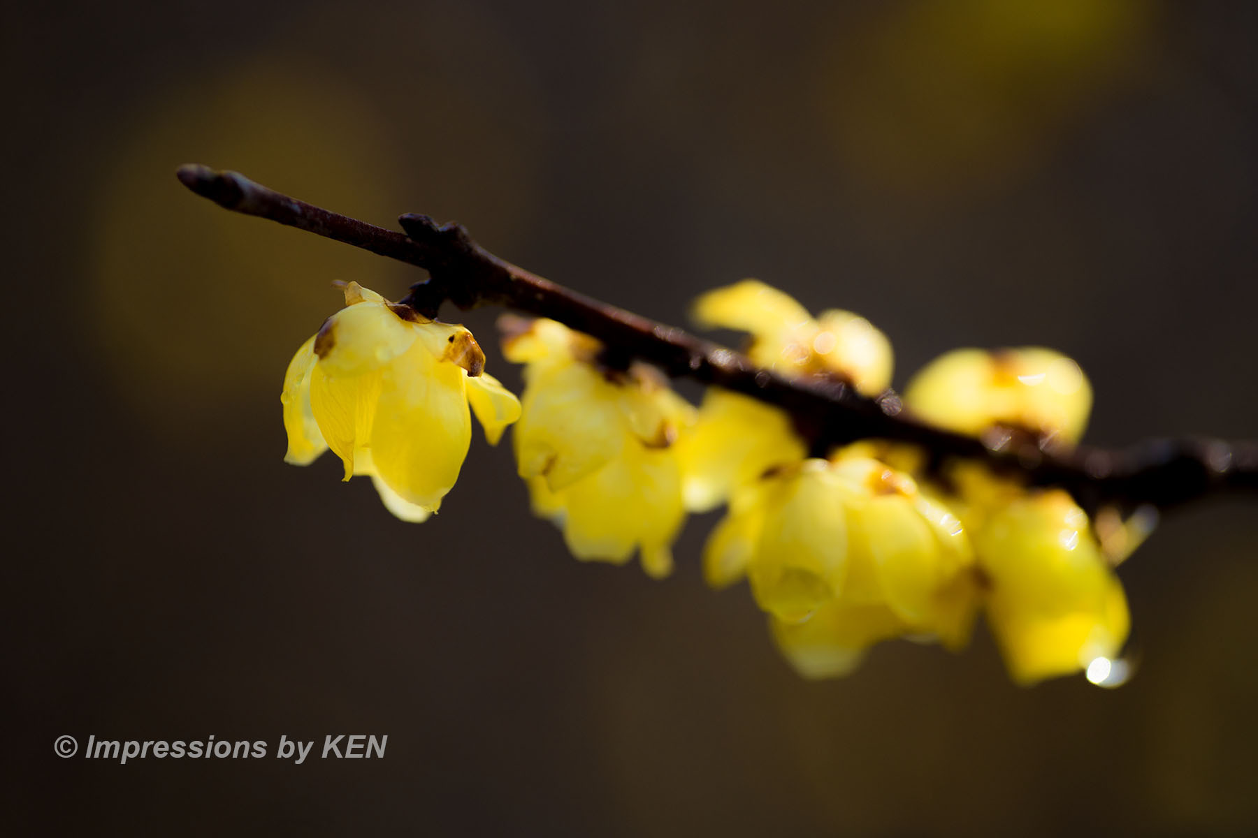 更に花に寄って、ロウバイの表情を捉えてみました。朝露が残り、爽やかな感じです。