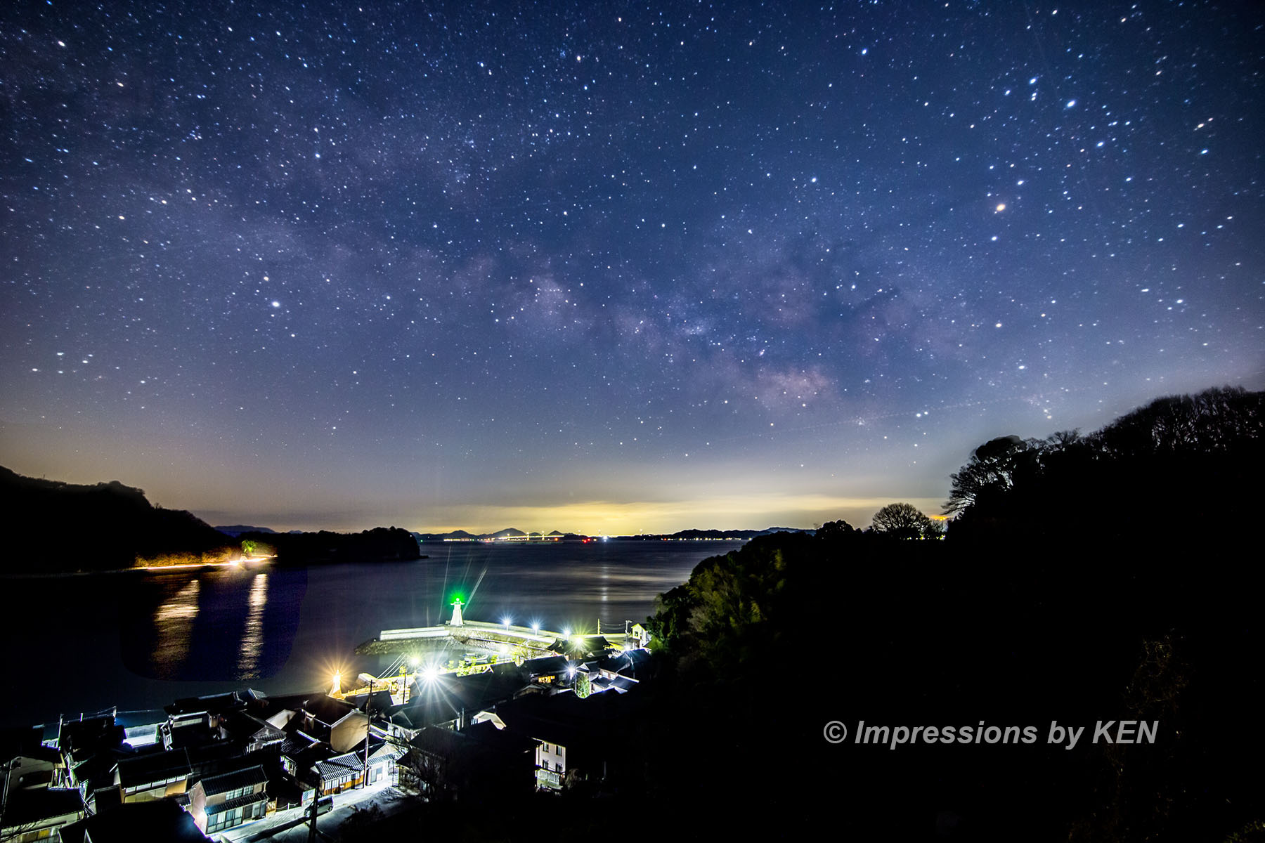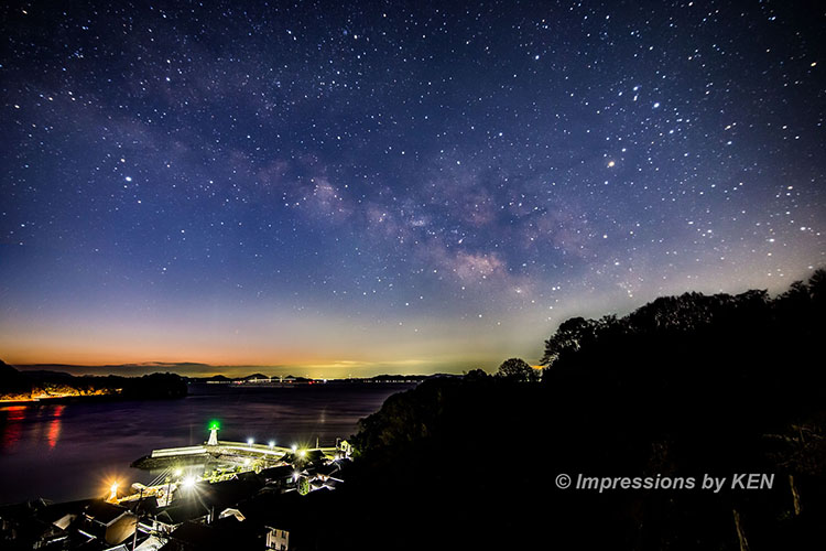 2026年初の天の川を、広島県呉市豊町、大崎下島の御手洗(みたらい)で撮影しました。実は2024年初の天の川も御手洗で撮影していて(→記事No.292)、その時はLEEの全面ソフトフィルターを使った一枚撮り。今回はパーシャルソフトフィルターの NiSi Star Soft を使って、星景は赤道儀追尾、地上景は固定撮影で、それぞれ8枚のコンポジットという、2年間の機材と現像手法の進歩を取り入れてみました。コンポジットは目新しい手法ではありませんが、私が遅まきながら1年前に Photoshop CC を導入して可能になりました。撮影日は2026年2月18日です。