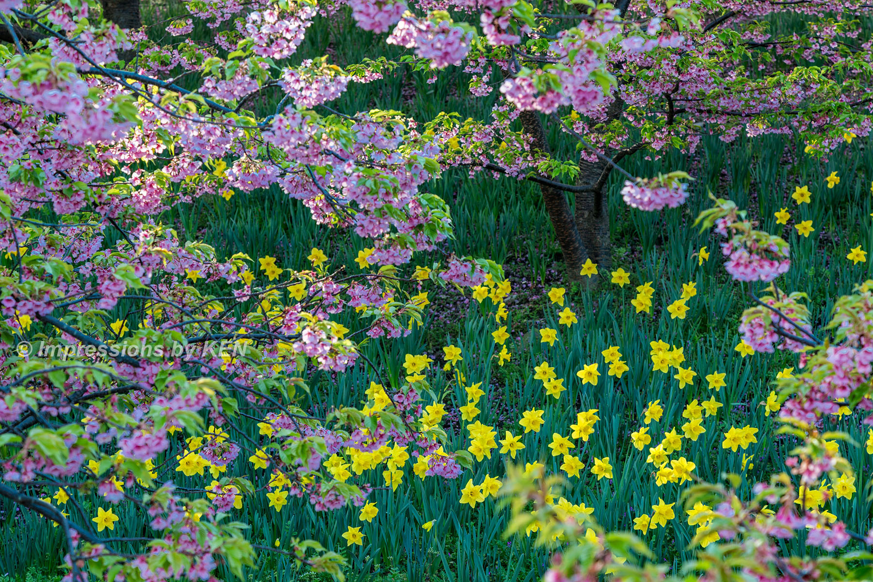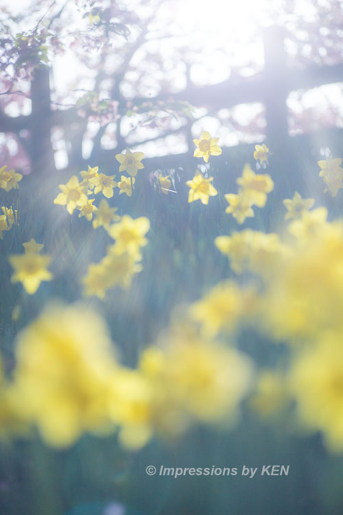 ここからは水仙を主役に。河津桜の下で咲いている空間感を大切にしてみました。