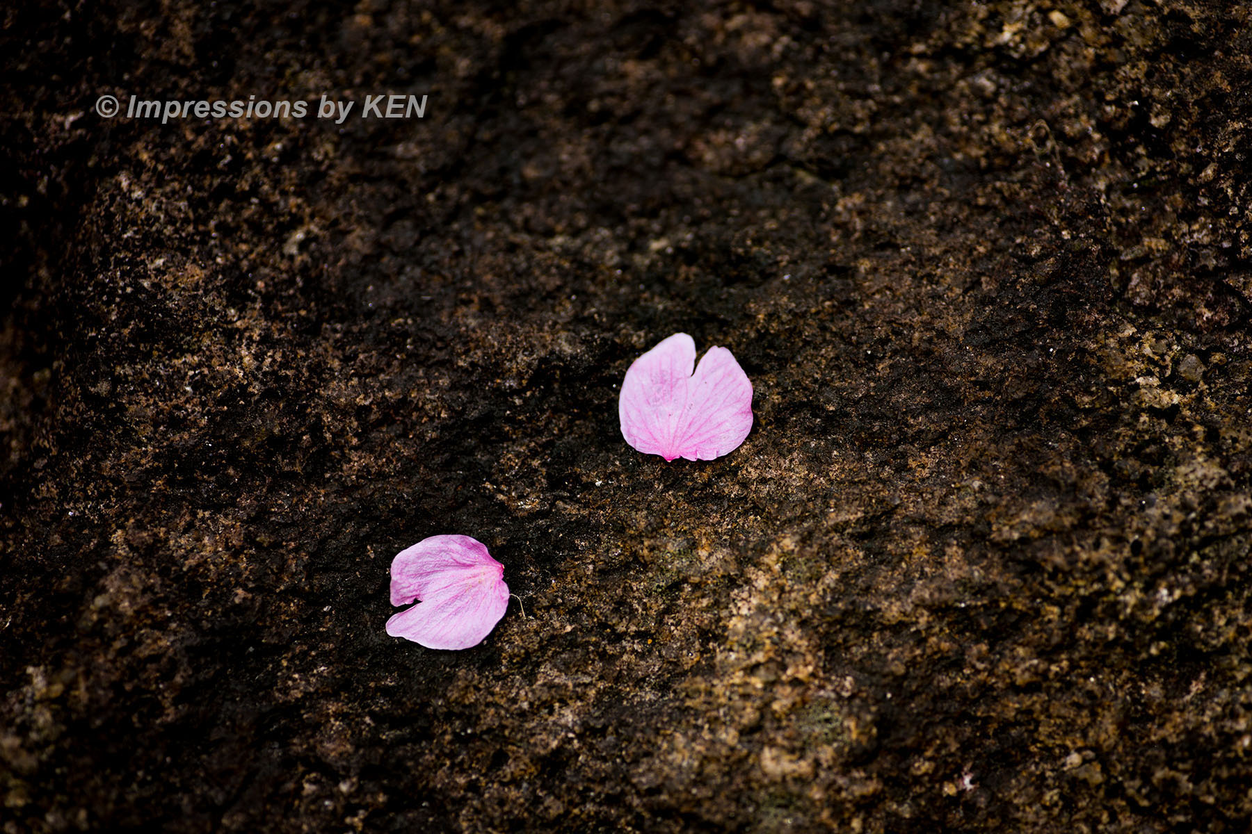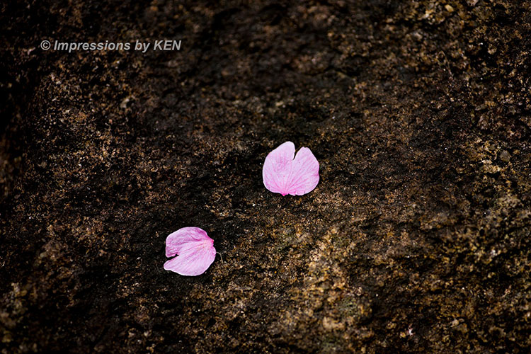 最後は地面の岩の上に落ちていた花びら2つ。ハートの様な形に幸せを感じます。