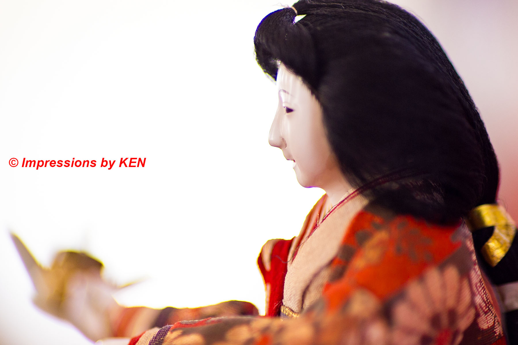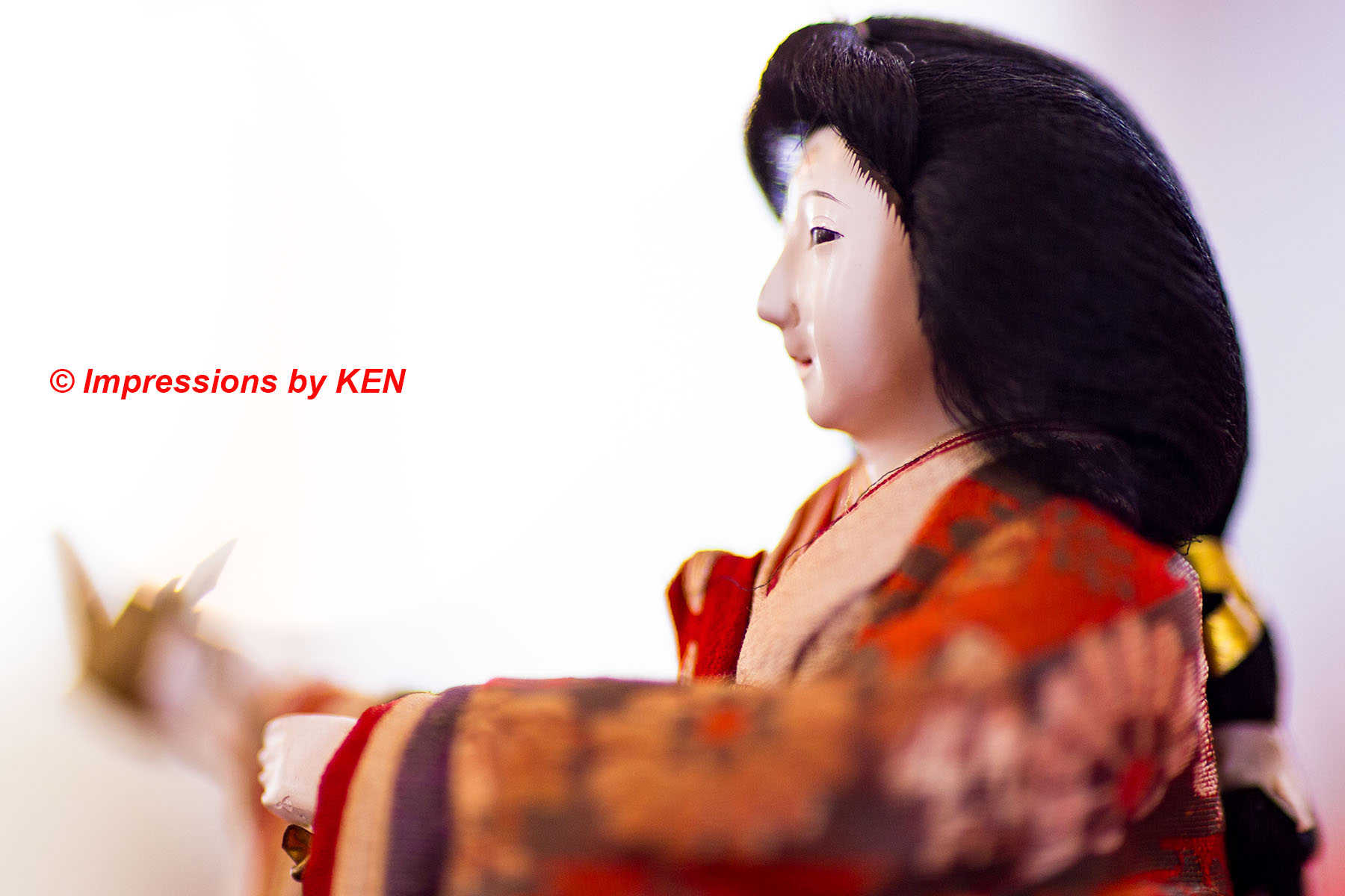 真横から。カメラの傾きを僅かに変えて、俯いたような角度で撮ると慎ましやかな女性の雰囲気が高まります。僅かなアングルで表情を変えるのは、まるで能面の様です。日本の伝統的人形造形のマジックでしょうか。