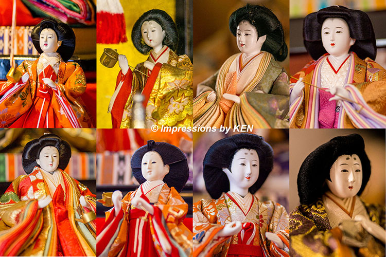 2月から3月に掛けて様々な街で「ひな祭り」が開催されて、観光客は由緒ある雛人形を見学することが出来ます。KENも竹原、上下町、柳井などを訪問して雛人形、その中でも美人揃いの三人官女を撮り歩いています。その写真の一部を抜粋したのがこの写真ですが、どの三人官女も美人ながら、あくまで「お人形顔」でリアリティはあまりありません。