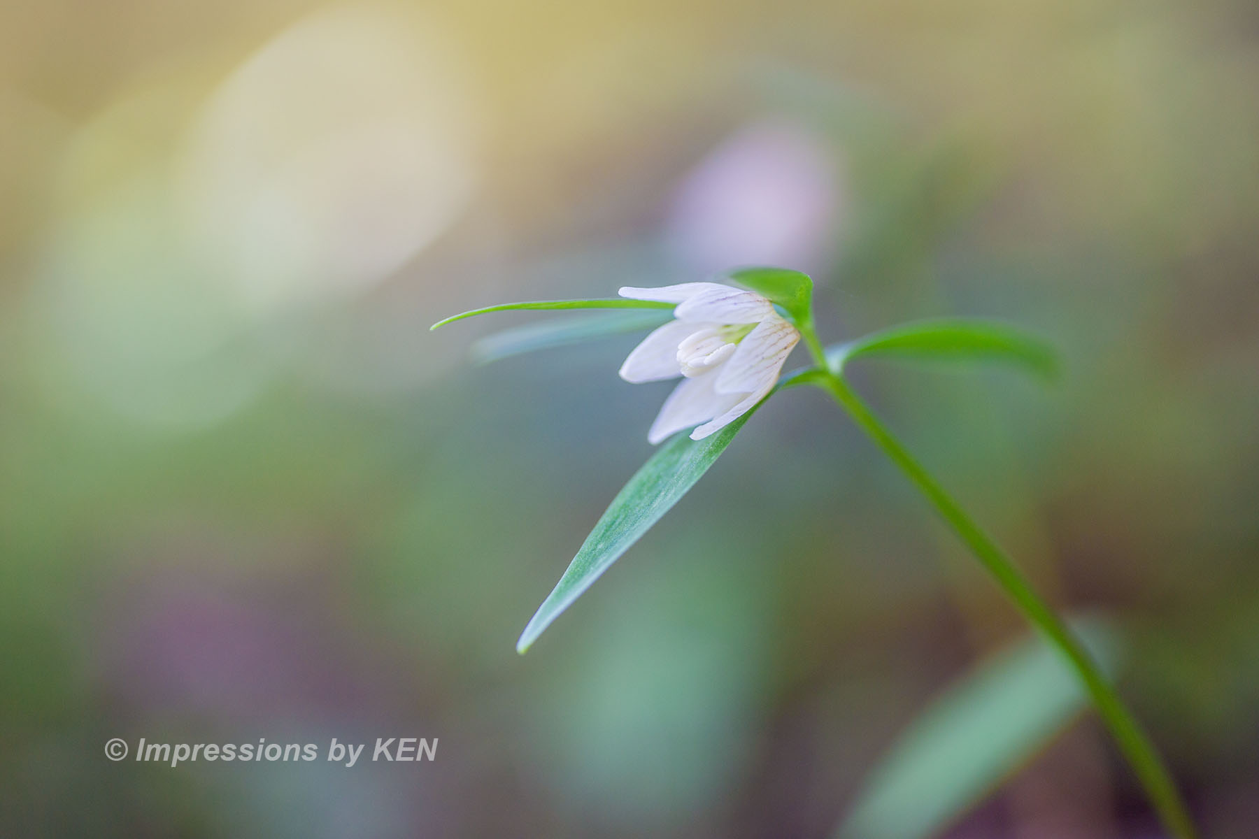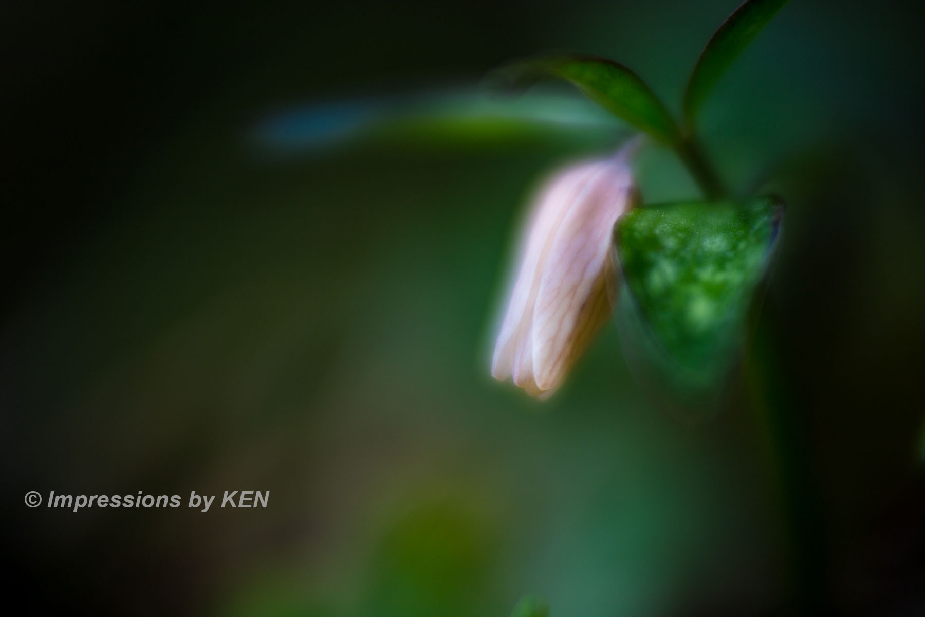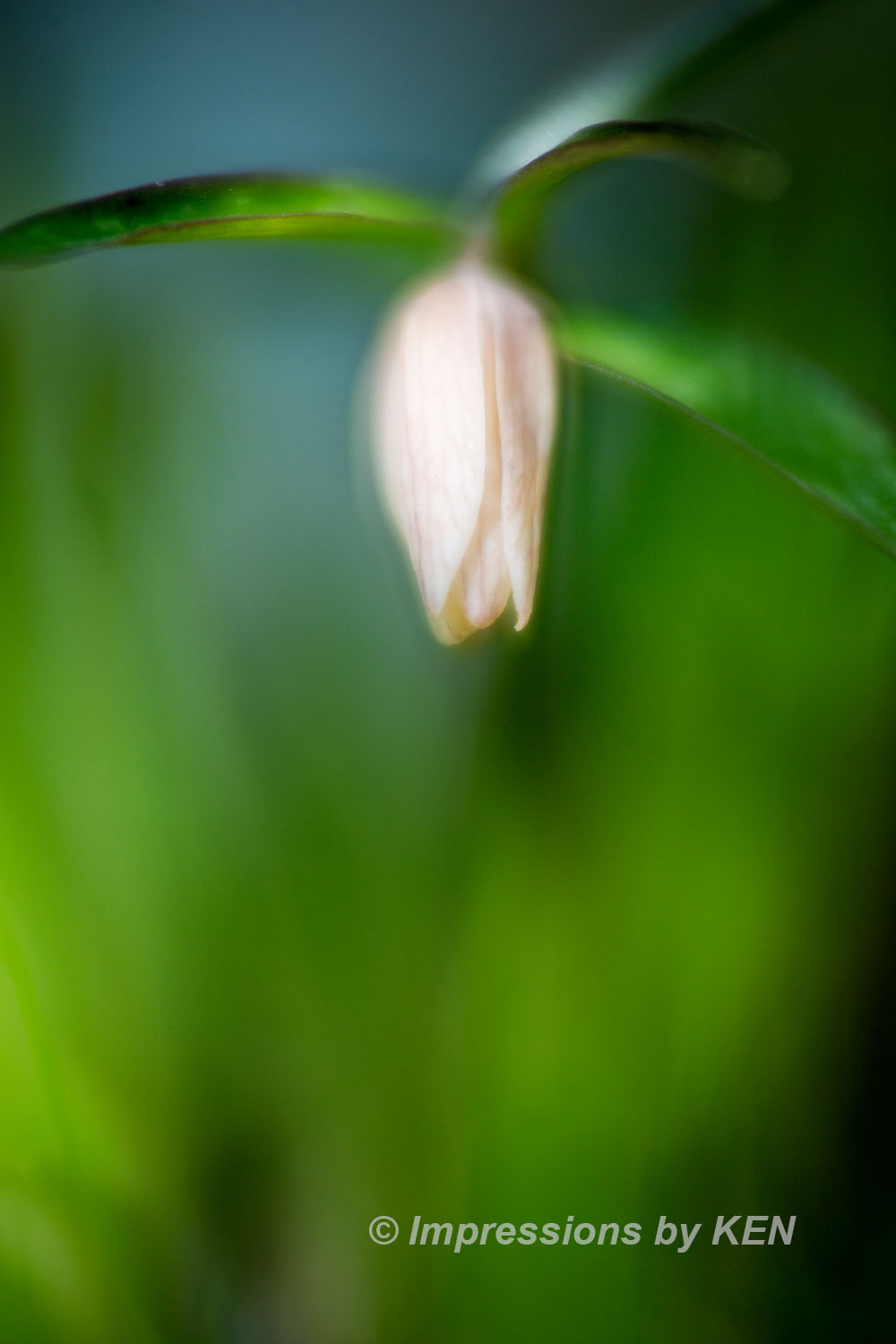 ここからは、イズモコバイモの表情を追いかけて何枚か。このカットは風に髪をなびかせている少女の様な雰囲気の花の形がお気に入り。何故か背景のボケも風になびいたかのように楕円形です。