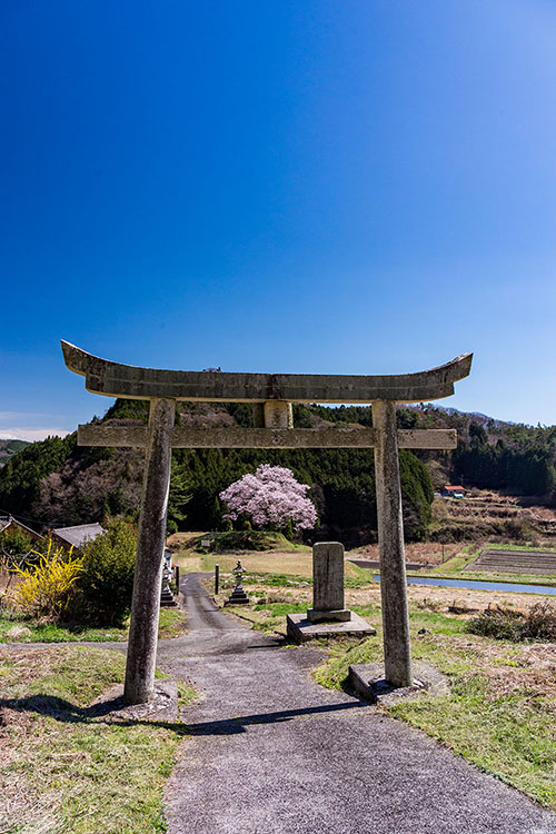 桜の北側に移動して、神宮寺らしく鳥居と組み合わせてみました。