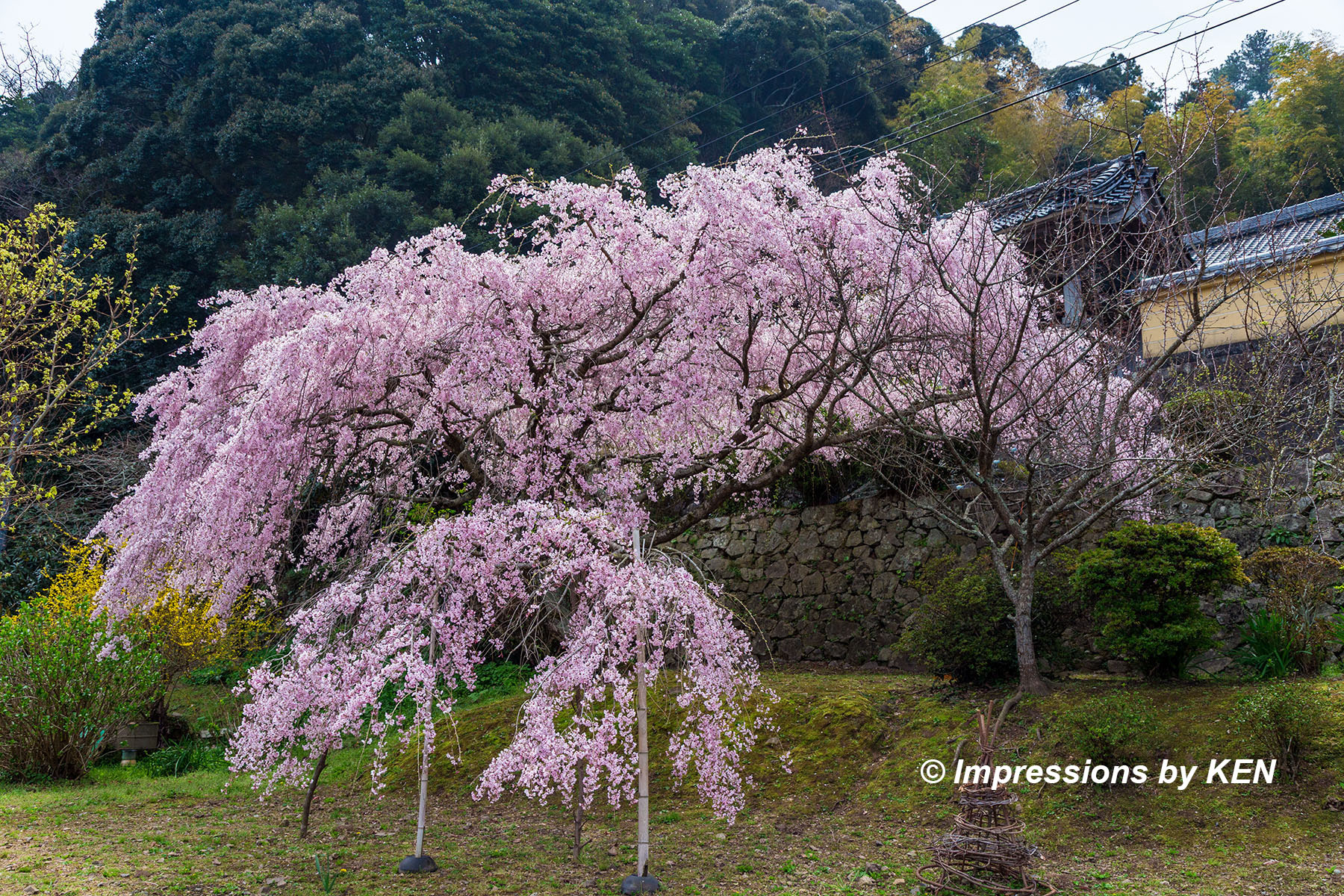 山口県萩市三見蔵本にある円徳寺の枝垂れ桜の作品です。綺麗な枝垂れ桜が咲いているとの記事を見て、広島からはるばる萩市まで行ってきました。円徳寺は初訪問。到着すると綺麗な枝垂れ桜が出迎えてくれましたが、それ以上にご住職の心が伝わる「物」に感銘を受けてきました。撮影日は2026年3月29日です。