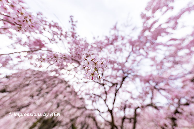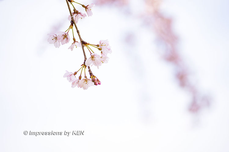 桜の真下から、枝垂れの先端を狙って撮ってみました。