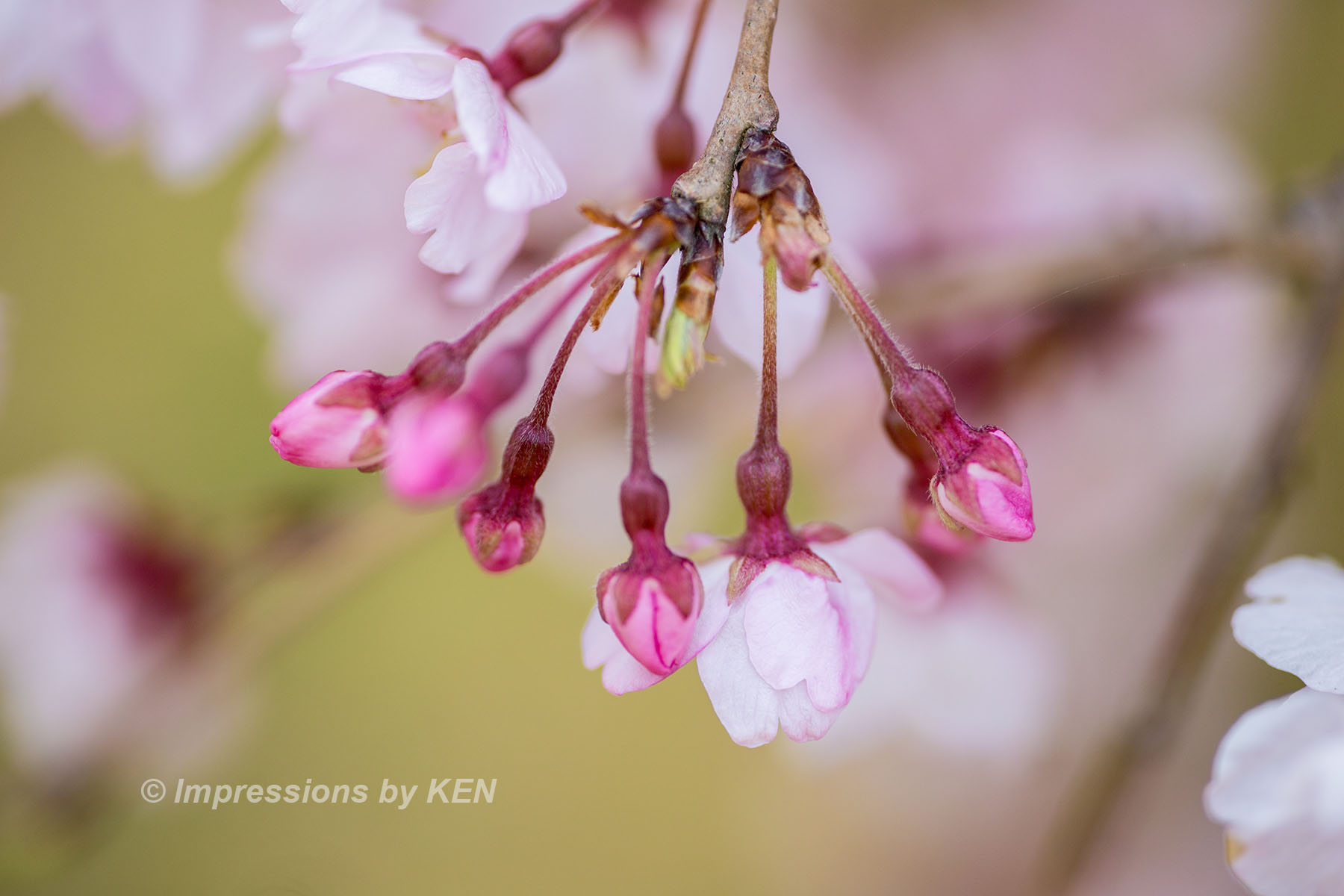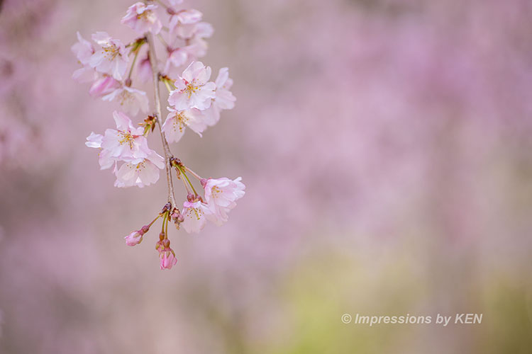 ピンクの背景にピンクの枝垂れで、淑やかに、、
