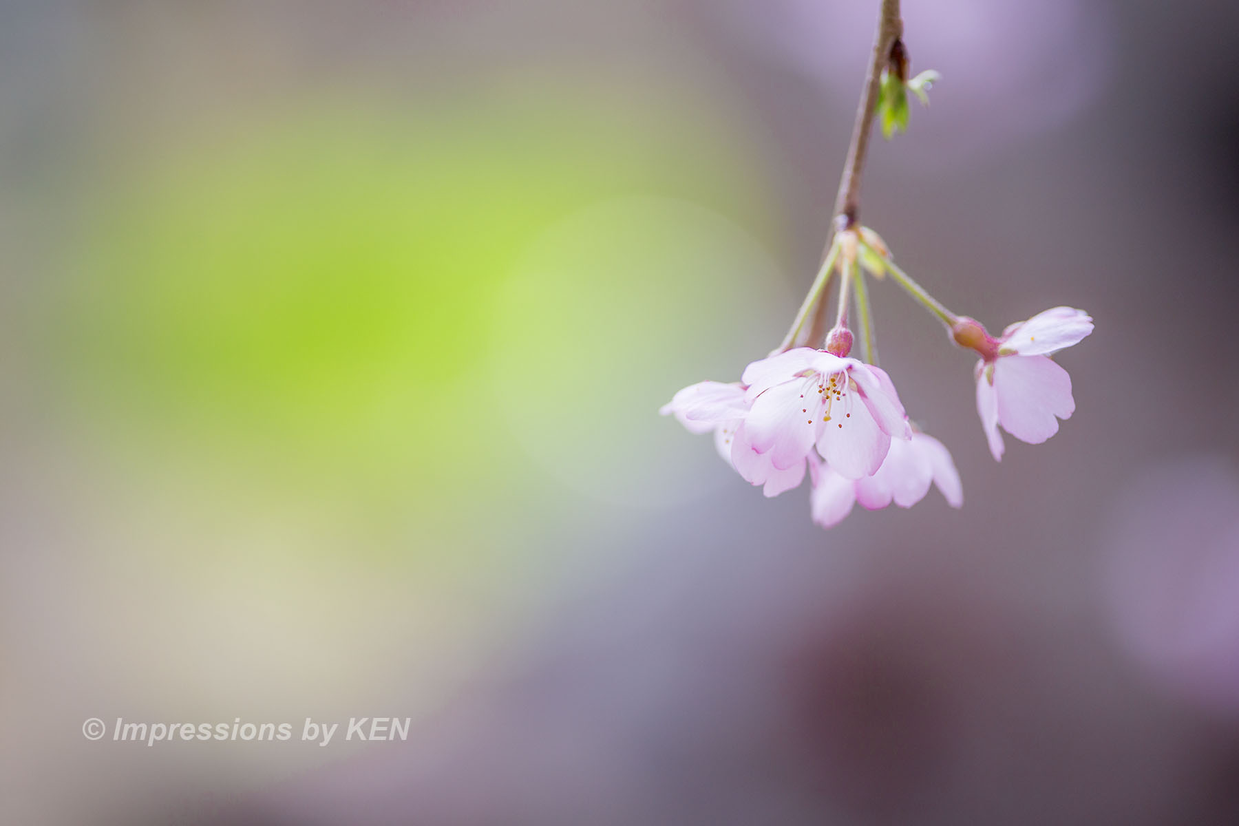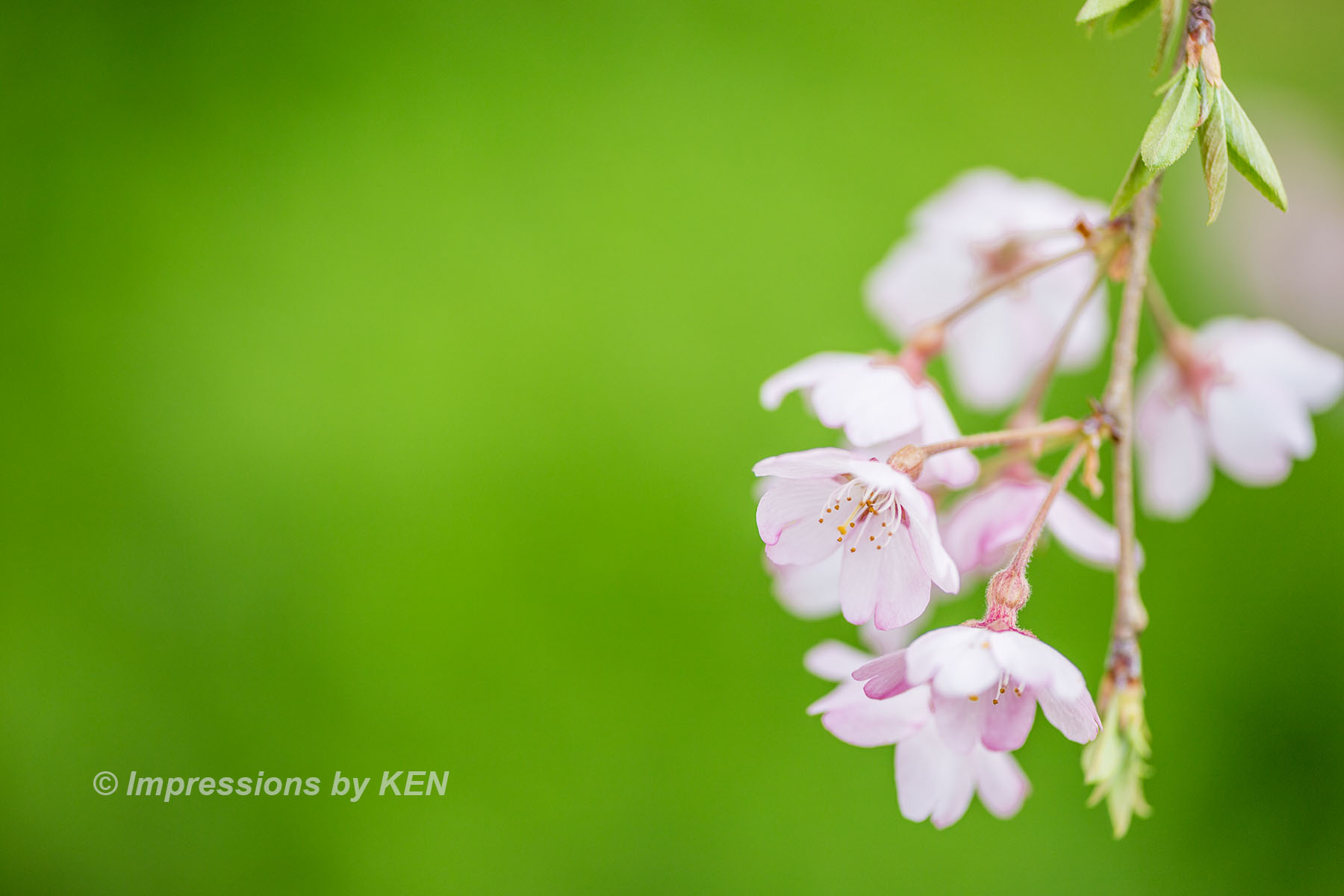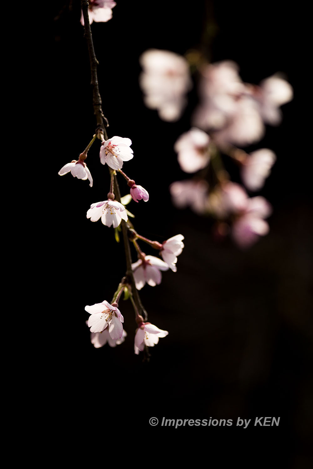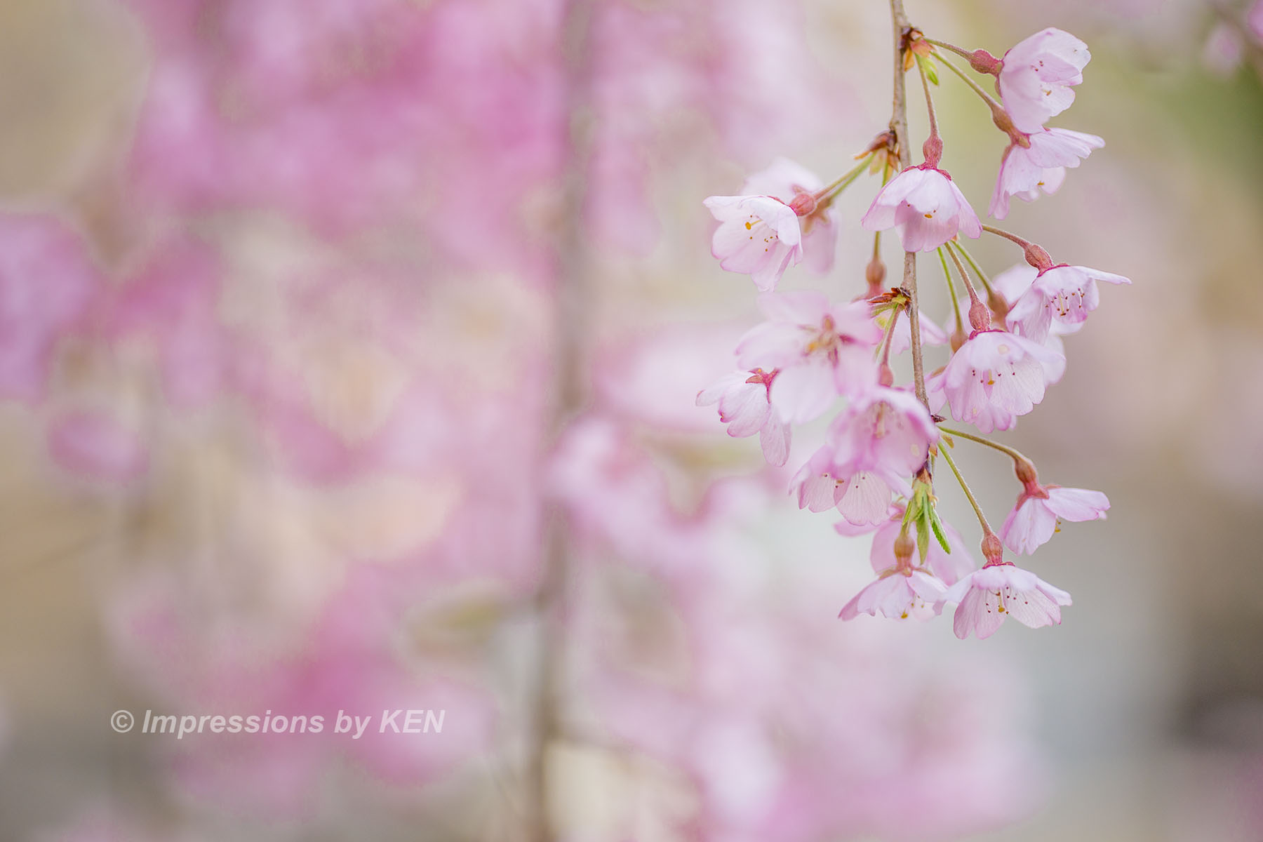 枝垂れている様子を収めるべく、枝垂れの先端の花を主役に、、