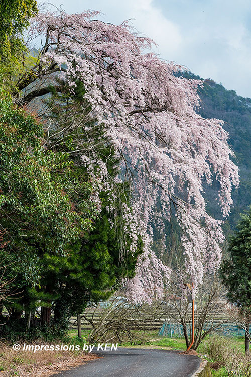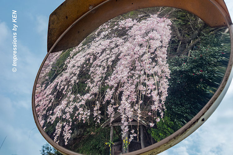ここ数年でとても有名になった枝垂れ桜。KENは15年ぐらい前から知ってはいますが、カーブミラーが邪魔で撮影していなかった桜です。